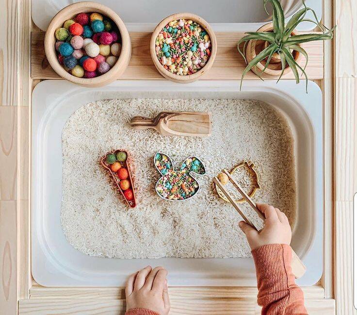 Sensory bins are an excellent Montessori-inspired activity that stimulates the senses and promotes creativity.